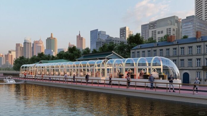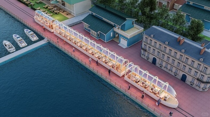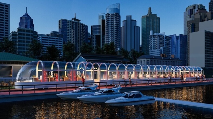 國外網紅餐廳"小火車"裝修采用透明PC耐力板做戶外餐廳頂棚和側封